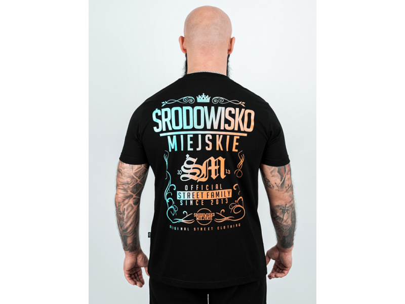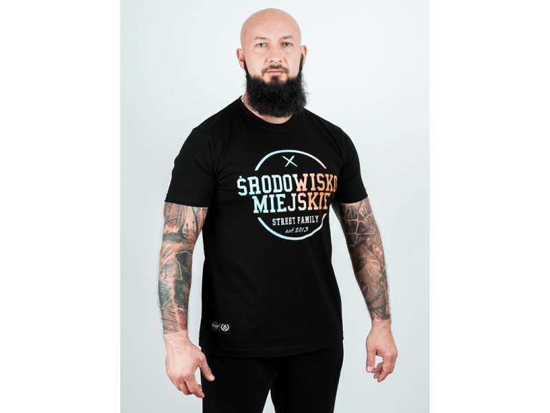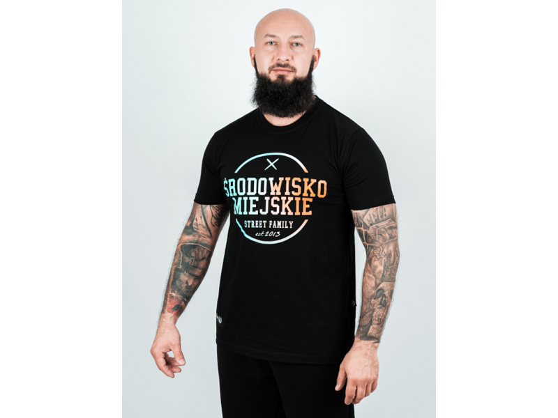 The Theme 2.0 t-shirt in black with a gradient print in blue and orange is a standout wardrobe piece that captures attention and aligns with the latest streetwear trends. At Środowisko Miejskie, we aim to blend comfort, quality, and original design, and this t-shirt perfectly embodies that vision. Its unique style makes it an ideal choice for both everyday wear and special occasions.