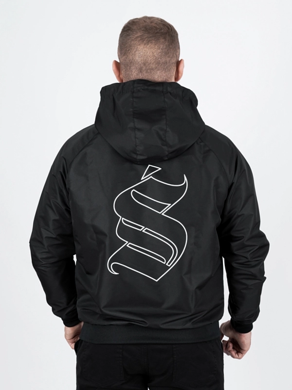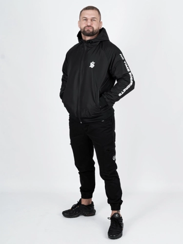The Icon windbreaker jacket is an excellent choice for all streetwear enthusiasts who want to combine style with functionality. Its sleek black color with striking accents makes it perfectly aligned with current street fashion trends. On the left chest, there is an impressive print of the white letter Ś in Gothic style, highlighting the unique character of our brand, Środowisko Miejskie.