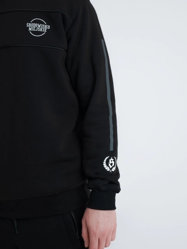 Bluza Freshline wyróżnia się eleganckim czarnym kolorem, który jest klasyczny i uniwersalny. Na lewej piersi umieszczono nadruk białego loga naszej marki, co dodaje jej charakteru i wyraża przynależność do ekskluzywnej grupy miłośników streetwearu. Na plecach znajduje się także logo naszej marki, co czyni tę bluzę rozpoznawalnym elementem stylizacji.