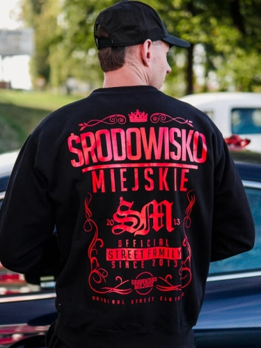 Bluza bez kaptura Theme marki Środowisko Miejskie to wyjątkowy model zaprojektowany z myślą o miłośnikach miejskiego stylu, którzy oczekują połączenia wygody, wysokiej jakości wykonania oraz wyrazistego designu. To klasyczna czarna bluza o ponadczasowym kroju, wzbogacona o czerwony nadruk, który podkreśla jej charakter i nadaje energii każdej stylizacji.