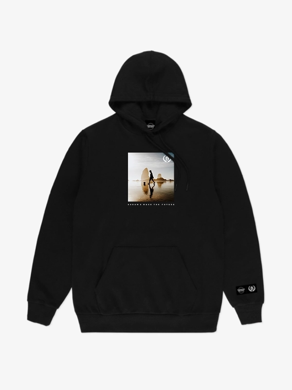 Bluza Dreams Make the Future w kolorze głębokiej czerni to wyjątkowa propozycja w ofercie marki Środowisko Miejskie – idealna dla tych, którzy cenią styl miejski i poszukują inspiracji w odzieży. Na przodzie bluzy widnieje unikalna grafika przedstawiająca chłopca prowadzącego piłkę na plaży, którego odbicie dostrzegalne jest w lustrze wody. Ten symboliczny obraz wyraża młodzieńcze marzenia i odwagę do podążania własną drogą, podkreślając rolę pasji i dążenia do celów. Bluza Dreams Make the Future jest dedykowana wszystkim, którzy wierzą, że marzenia mogą kształtować przyszłość.