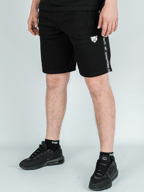Krótkie spodenki dresowe "Mordka Lampas" - Czarne / Białe