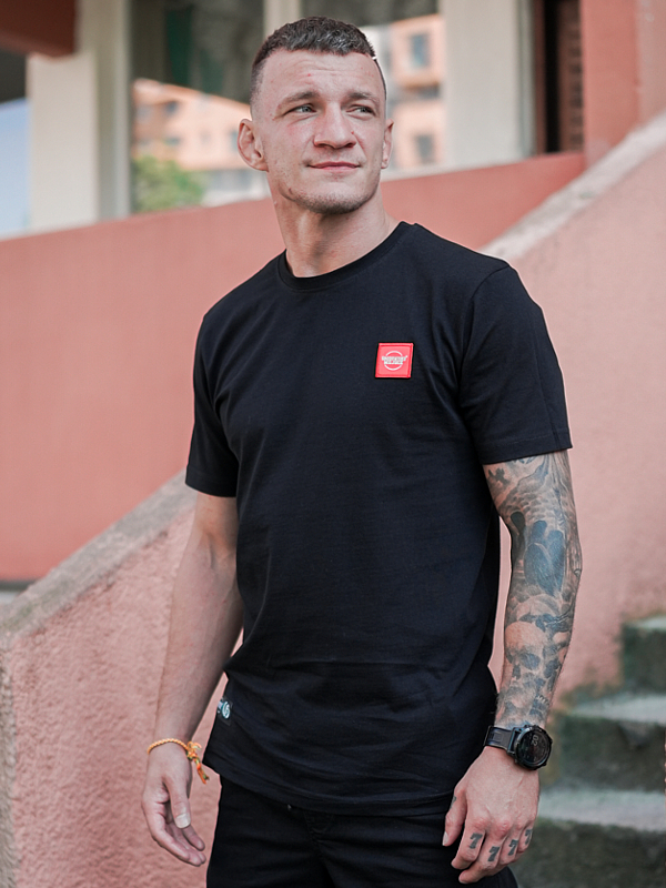 Koszulka "CLS Mini" występuje w klasycznym czarnym kolorze, co czyni ją uniwersalnym elementem garderoby, pasującym do wielu stylizacji. Na lewej piersi umieszczona jest naszyta czerwona naszywka żakardowa z naszym białym logo. To subtelne, ale wyraziste akcenty nadają koszulce charakteru, sprawiając, że wyróżnia się ona na tle innych produktów. Logo zostało wykonane z najwyższą starannością, co zapewnia trwałość i estetykę.
