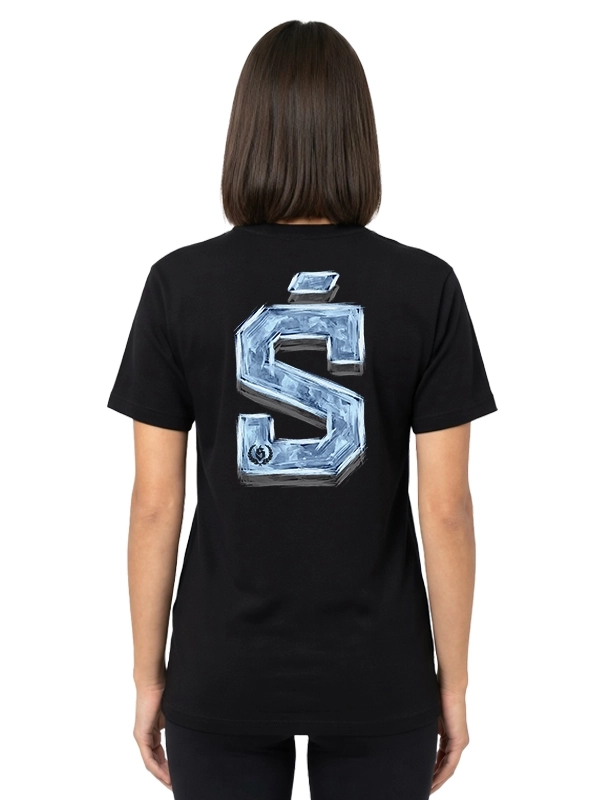 Tył koszulki to główny punkt projektu. Duże, wyraziste „Ś” w lodowej stylistyce przyciąga uwagę i definiuje cały klimat koszulki. Surowa faktura, chłodna kolorystyka i dynamiczne wykończenie tworzą efekt, który wygląda jak zamrożony w ruchu. Poniżej subtelny wieniec laurowy – symbol zwycięstwa, które przychodzi z konsekwencji.
