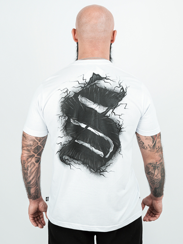 • Tył koszulki – na plecach widnieje gotycka litera "Ś" w autorskiej teksturze, nadrukowana nowoczesną techniką DTG (Direct to Garment), która pozwala na uzyskanie niezwykle szczegółowego i realistycznego wzoru.