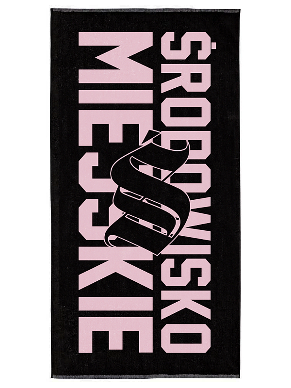 Ręcznik ma klasyczny, czarny kolor, który idealnie komponuje się z różowym napisem "Środowisko Miejskie". Wyróżnia się on dużą literą "Ś" w stylu gotyckim, co nadaje mu wyjątkowego charakteru. Nadruk wykonany metodą sublimacji zapewnia trwałość i intensywność kolorów, dzięki czemu ręcznik zachowuje swój estetyczny wygląd nawet po wielu praniach. Jego design nie tylko przyciąga wzrok, ale również odzwierciedla ducha naszej marki, łącząc nowoczesność z klasyką.