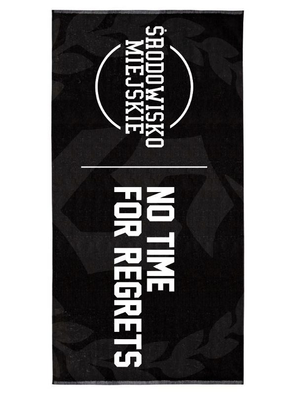 Wysokiej jakości ręcznik plażowy Środowisko Miejskie z dużym logiem klasycznym oraz napisem "NO TIME FOR REGRETS" z grafiką na całej powierzchni będzie nieodłącznym atrybutem podczas czasu spędzonego na plaży czy na basenie. Duży ręcznik o wymiarach 70x140cm wykonany został z mieszanki bawełny (60%) z poliestrem (40%). Zastosowano nadruk przy pomocy sublimacji na jednej powierzchni ręcznika. Druga strona ręcznika jest w całości biała. Nadruk nie traci koloru. Ręczniki z mikrofibry są bardzo chłonne, lekkie i przede wszystkim szybkoschnące. Aby te wszystkie wyjątkowe właściwości zostały zachowane jak najdłużej zalecamy pranie w temperaturze 40°C, stosowanie delikatnych detergentów i unikanie płynów zmiękczających. Ręczników z mikrofibry pętelkowej nie należy prasować.